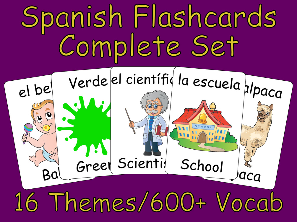 Discover the joy of learning Spanish with our comprehensive set of Spanish Flashcards. Our complete set includes 600+ flashcards that cover 16 engaging themes, such as animals, foods, numbers, countries, family, school, transportation, shapes, colors, dinosaurs, jobs, body parts, clothes, weather, sports, and feelings.